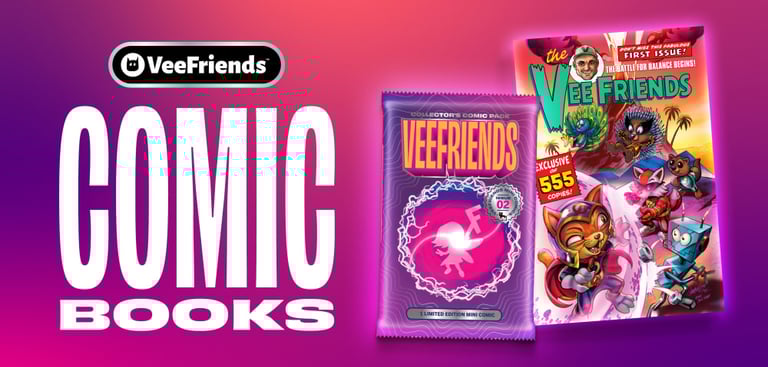 "The VeeFriends Comic Book series officially kicks off with VeeFriends #1: The Battle for Balance Begins — marking the start of a storytelling journey that expands the personalities, histories, and relationships of your favorite VeeFriends characters." - VF Blog